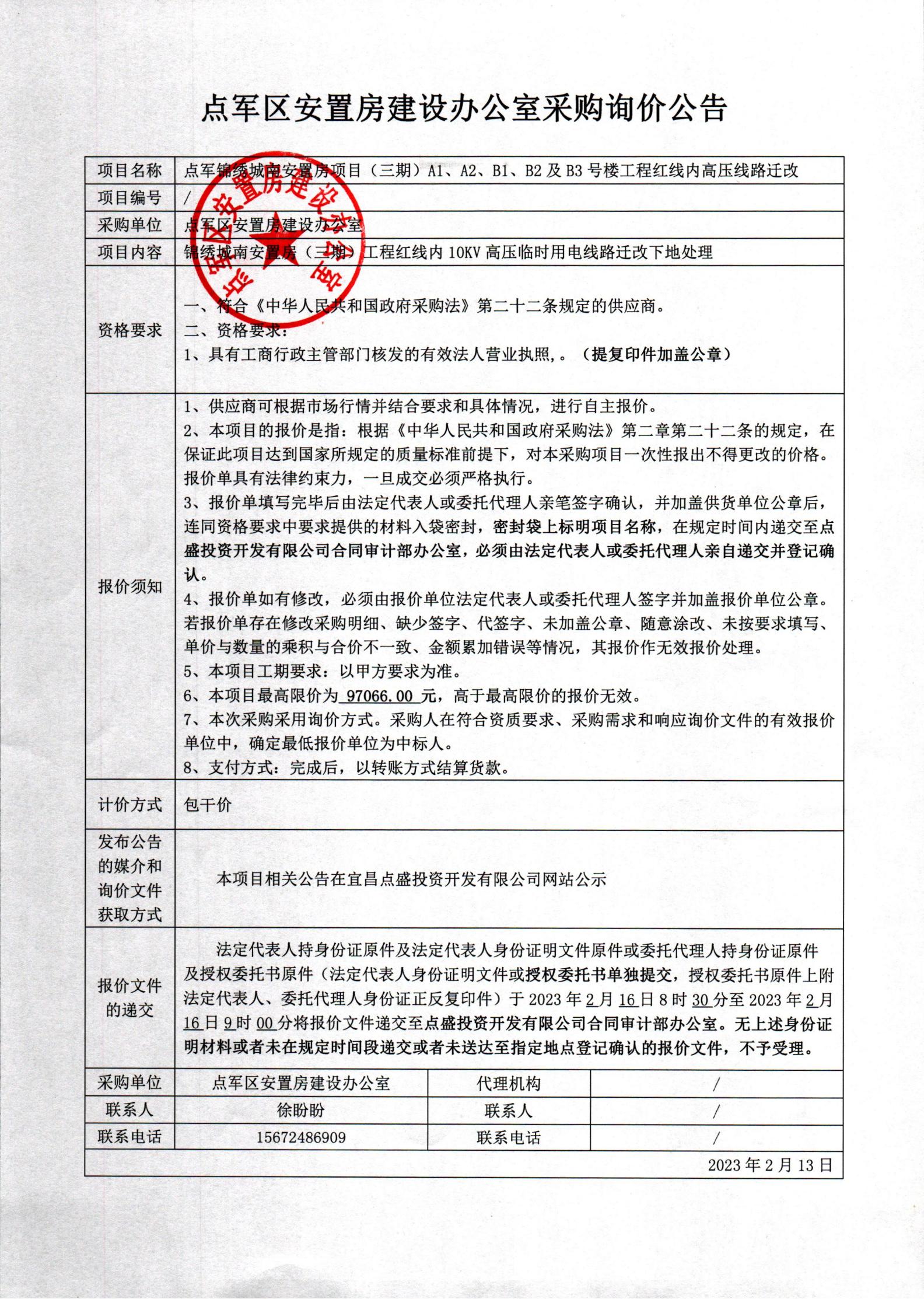 錦繡城南三期(EPC+F)工程紅線內高壓遷改詢價公告