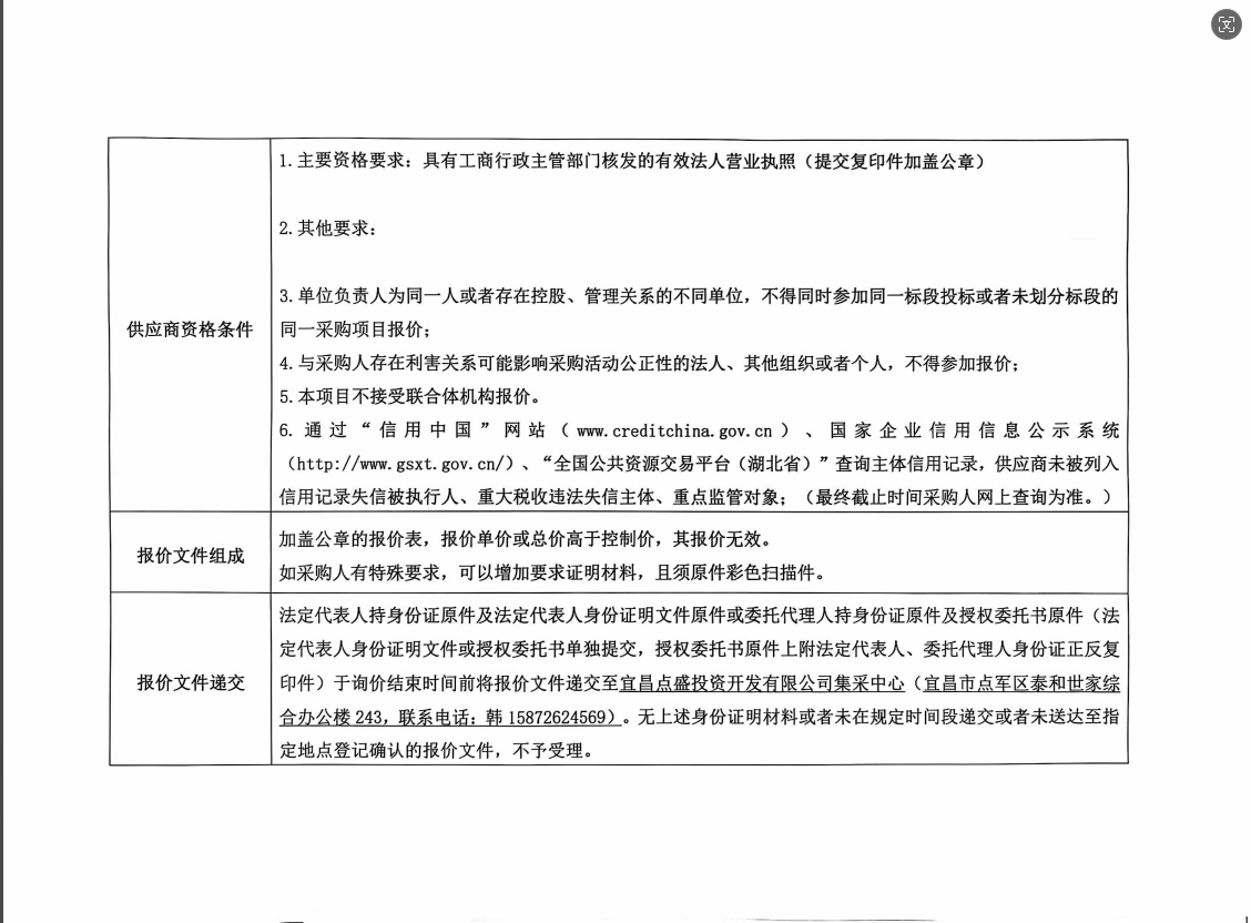 詢價(jià)公告