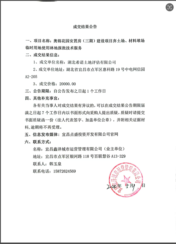 奧錦花園安置房(三期)建設(shè)項(xiàng)目棄土場、材料堆場臨時用地使用林地報(bào)批技術(shù)服務(wù)成交公告