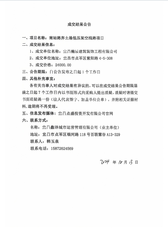 南站路棄土場低壓架空線路項目成交公告