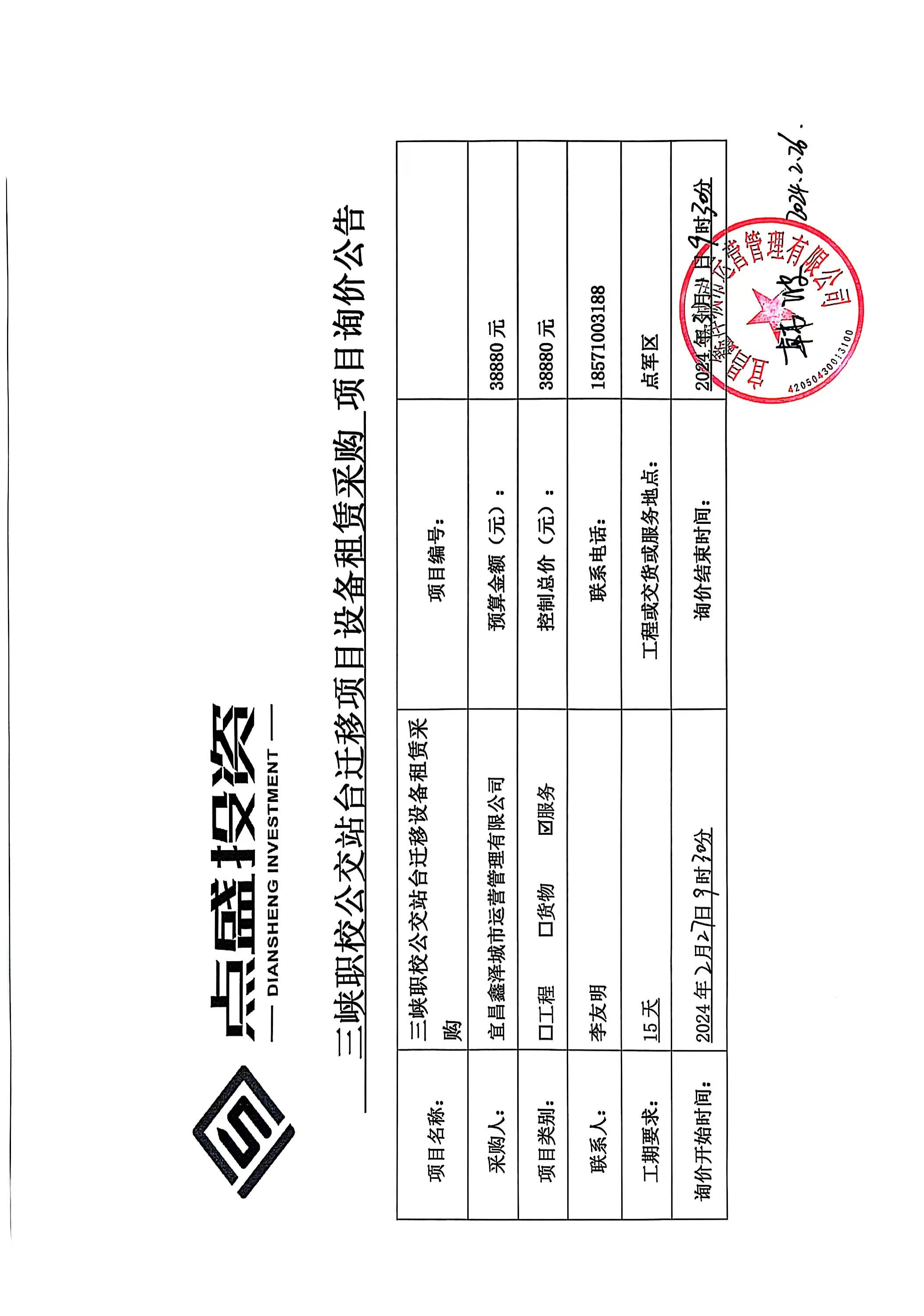 三峽職校公交站臺遷移項(xiàng)目設(shè)備租賃采購成交公告